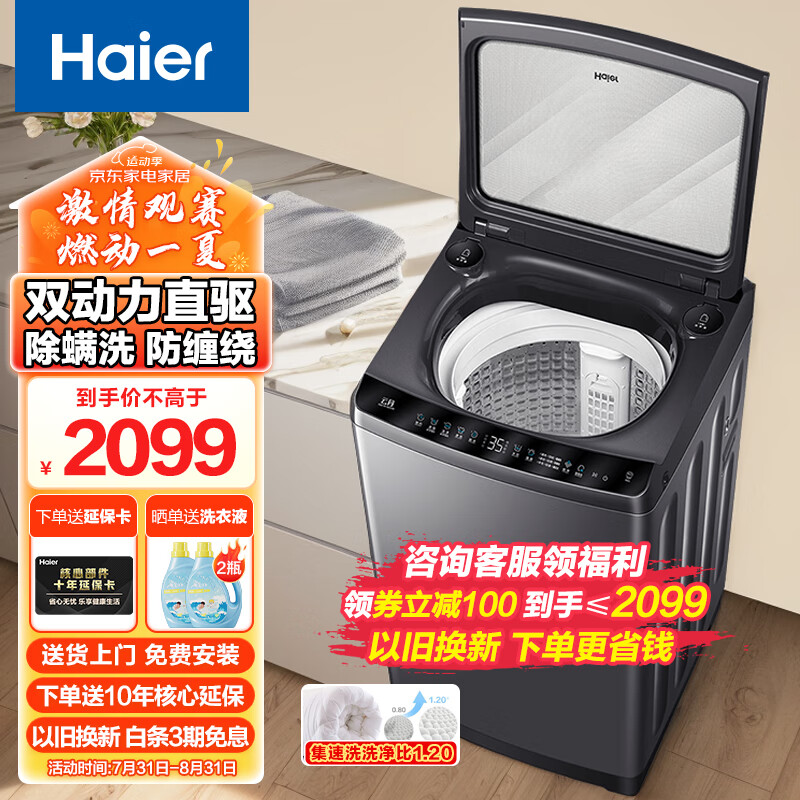 海尔(Haier)10KG双动力防缠绕除螨洗衣机全自动波轮家用大容量直驱变频一级能效智能预约XQS100-BZ3288[家电]价格:2199.00元!