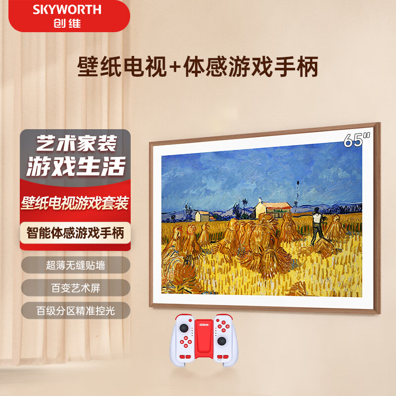 创维壁纸电视65A7D+蓝牙游戏手柄套装 65英寸电视机 超薄无缝贴墙 4K超高清护眼 无线体感游戏手柄价格:5798.00元!