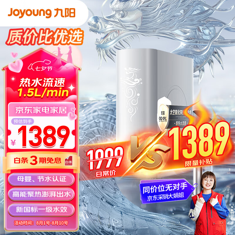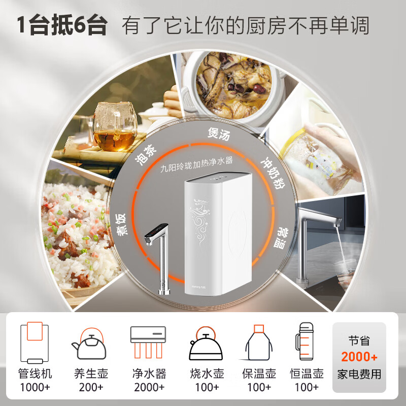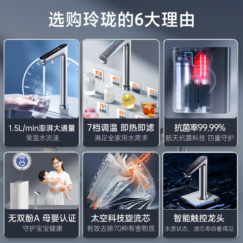 九阳(Joyoung)玲珑 加热净水器家用 厨下式RO反渗透母婴直饮即热一体机过滤器 1.58L/min R1M 高端触控龙头价格:1599.00元!