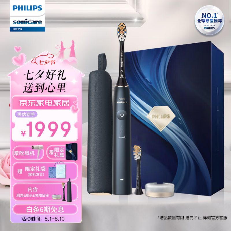 飞利浦(PHILIPS)电动牙刷成人 七夕礼物送男女友 含充电旅行盒20倍清除牙菌斑智能感应钻石AI刷旗舰款HX9996午夜蓝价格:2199.00元!