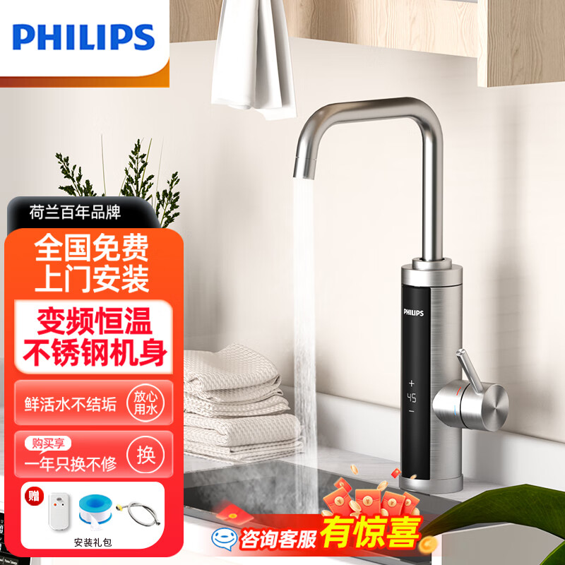 飞利浦(PHILIPS)电热水龙头 变频恒温不锈钢速热水龙头即热式小厨宝速热快速加热电热水器AWH1040SS/93价格:389.00元!