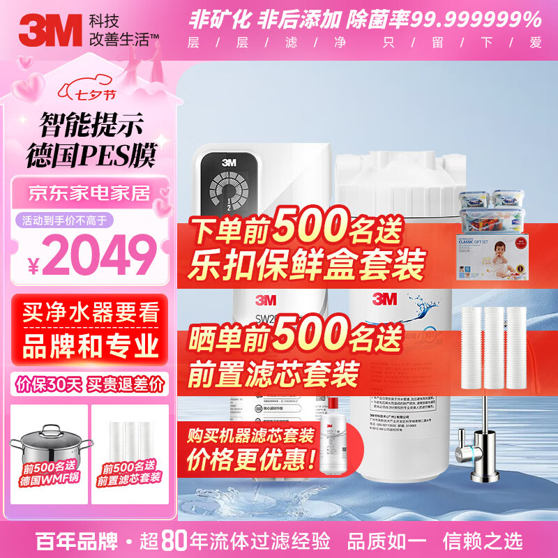 3M净水器家用净水机0废水矿物质直饮智能2.2L/分大流量700G过滤器 SW20价格:2329.00元!