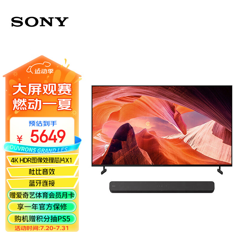 索尼(SONY)KD-55X80L+HT-S100F 轻松追剧套装 大部提升电视音质 可壁挂 全景声 家庭影院 回音壁价格:5649.00元!