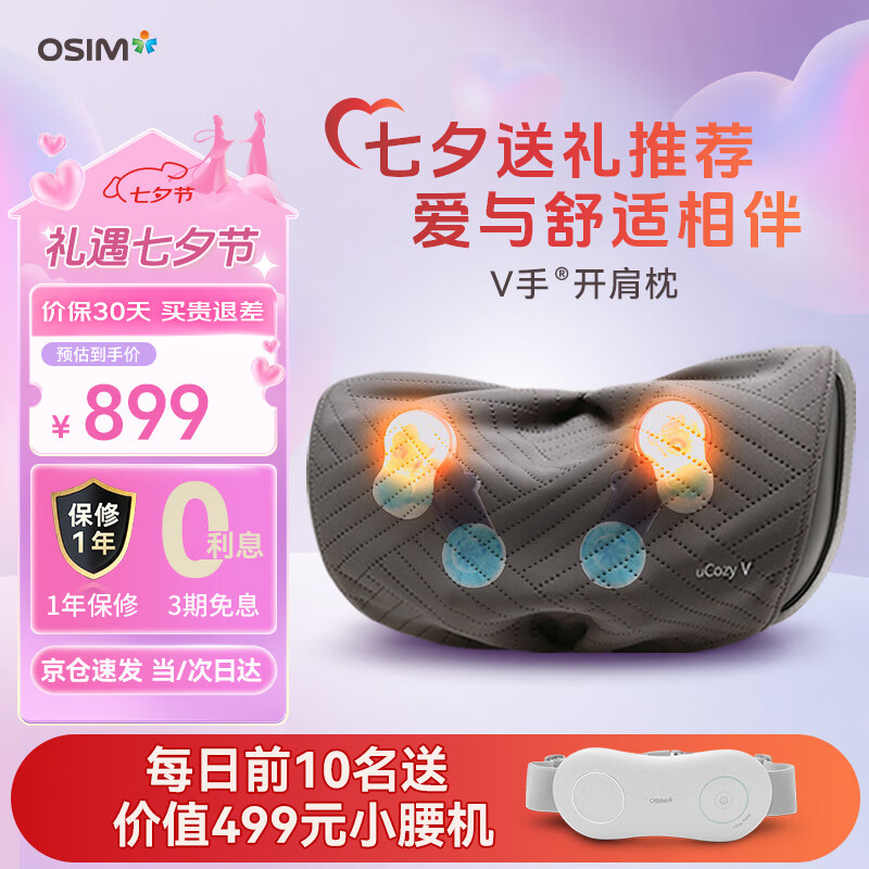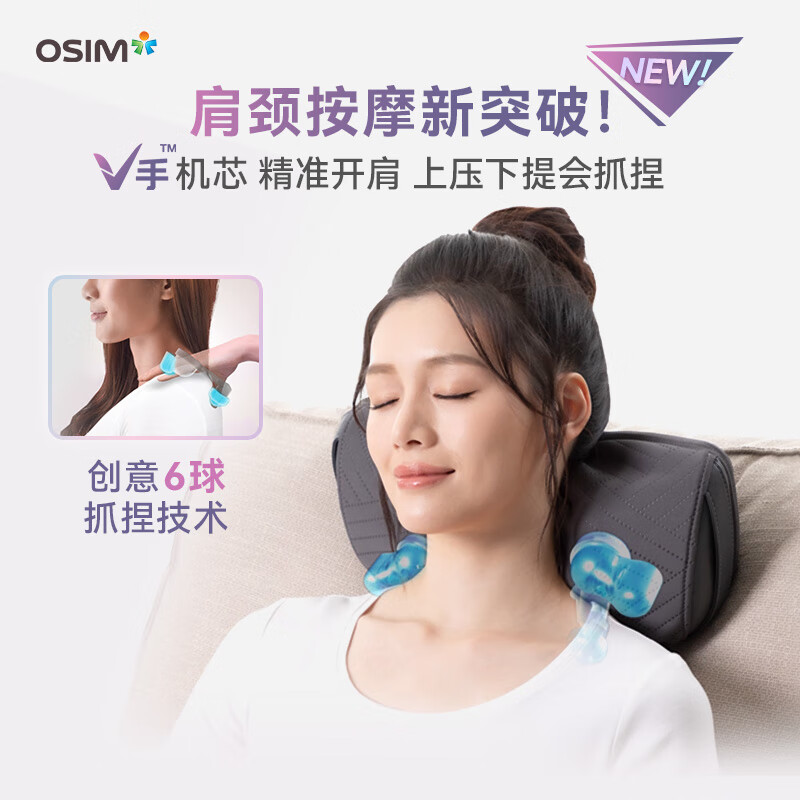 傲胜(OSIM)颈椎按摩器按摩靠枕 V手暖摩枕 OS-2230 多部位揉捏 颈部腰部肩颈按摩仪 热敷 太空灰七夕礼物价格:1019.00元!