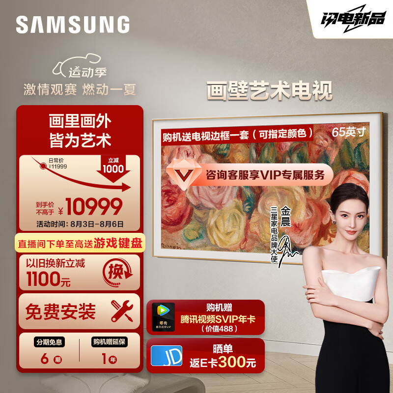 三星(SAMSUNG)65LS03D 65英寸 frame画壁艺术电视 AI电视 QLED量子点 QA65LS03DAJXXZ价格:10999.00元!