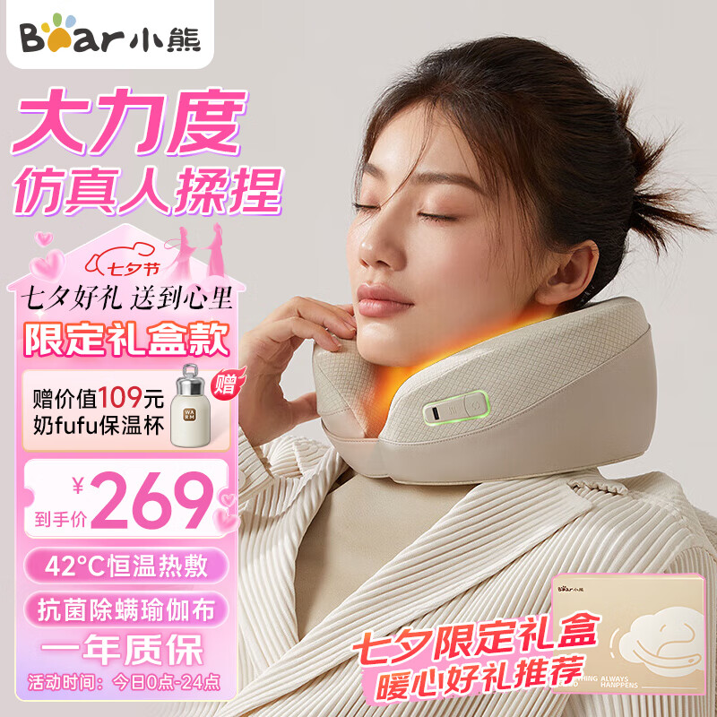 小熊(Bear)颈椎按摩器 颈部按摩仪 热敷便携按摩枕 精美礼盒包装送男女生日七夕情人节礼物AMQ-F03C5-P02价格:319.00元!