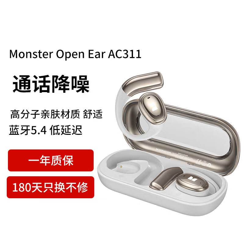 魔声(MONSTER)Open Ear AC311蓝牙耳机挂耳式不入耳骨传导概念运动骑行降噪长续航手机通用 珍珠白价格:109.00元!