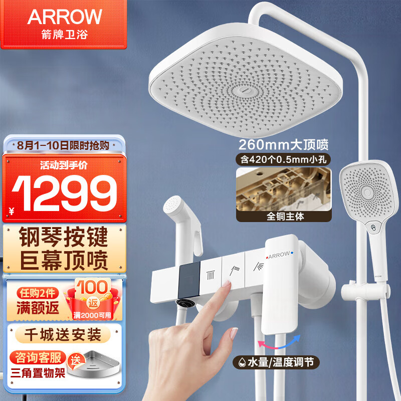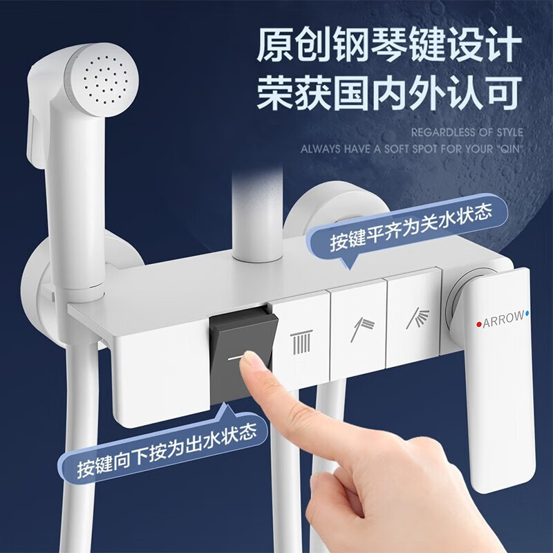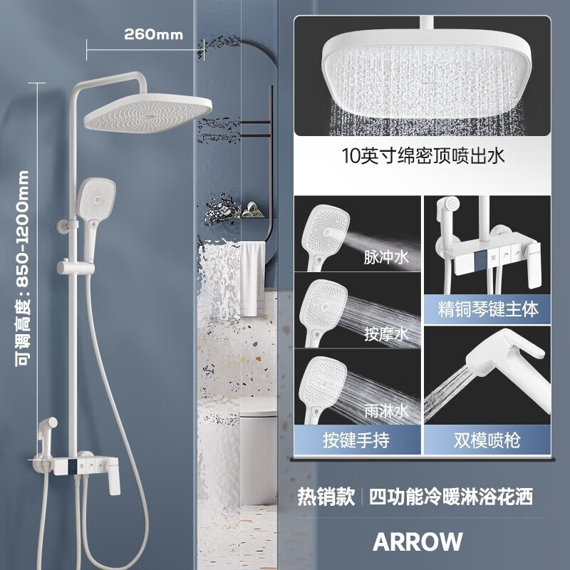 箭牌(ARROW) 淋浴花洒套装增压花洒全套莲蓬头淋雨器套装浴室花洒按键花洒 【钢琴白】按键丨冷热经典款价格:1549.00元!
