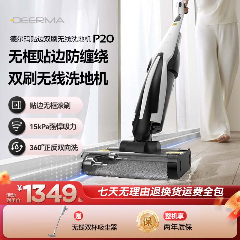 德尔玛(Deerma)P20套餐版 双滚刷智能洗地机 防缠绕沿边家用洗拖吸一体机电动拖把手持吸尘器扫地机 七夕礼物价格:1349.00元!