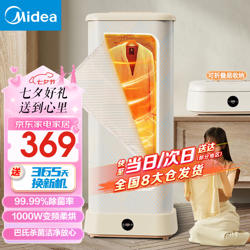 美的(Midea)可折叠干衣机烘干机家用折叠收纳便携小型风干机变频暖风布罩类婴儿烘干机烘干内衣便携烘干机 【巴氏+高温除菌】HBGD10D1价格:499.00元!