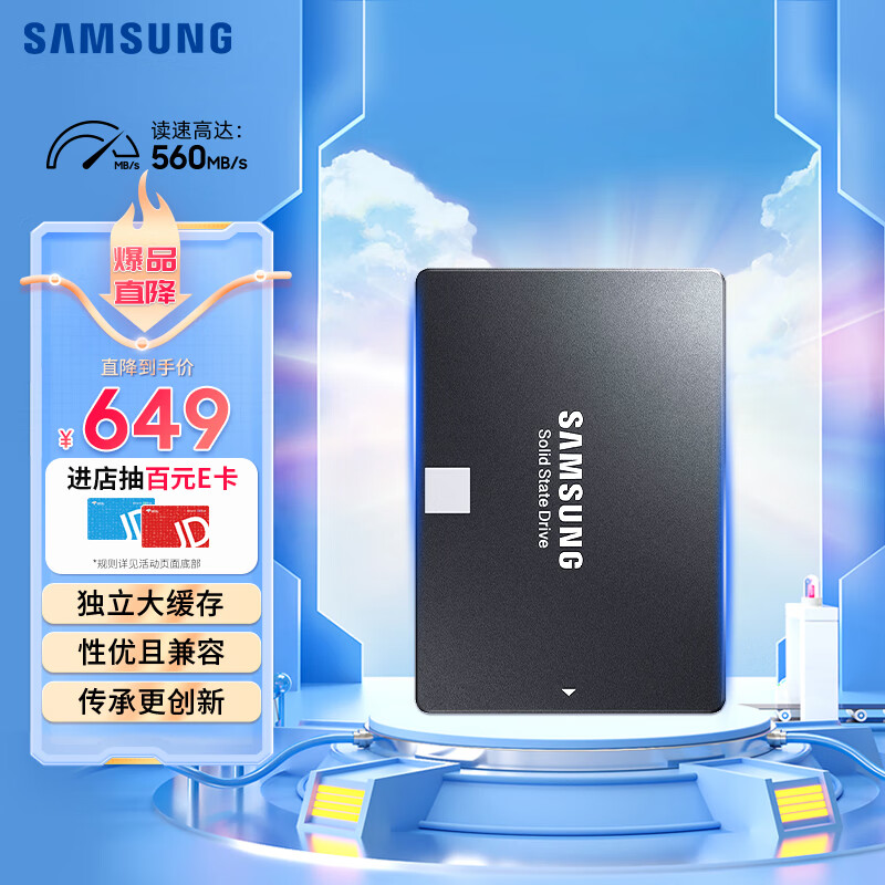 三星(SAMSUNG)1TB SSD固态硬盘 SATA3.0接口 870 EVO(MZ-77E1T0B)价格:649.00元!
