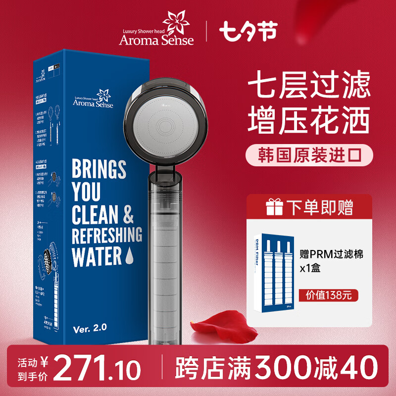 Aroma Sense过滤花洒喷头增压韩国进口活性碳除氯净水过滤沐浴花洒手持莲蓬头 PR9000花洒黑色标配价格:338.00元!