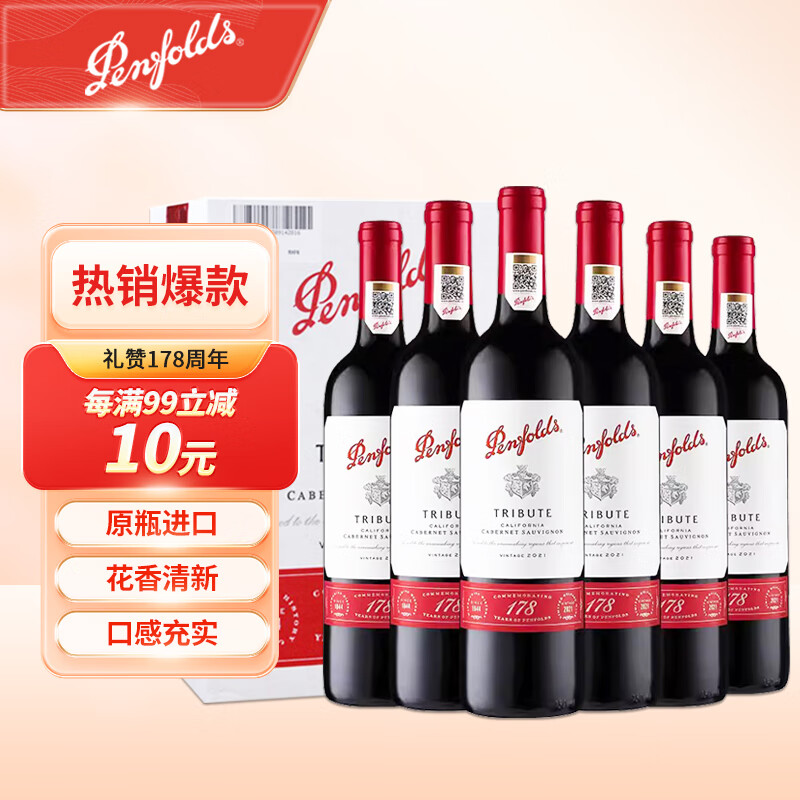 奔富(Penfolds)礼赞系列178周年加州赤霞珠红葡萄酒750ml *6 整箱装价格:1728.00元!