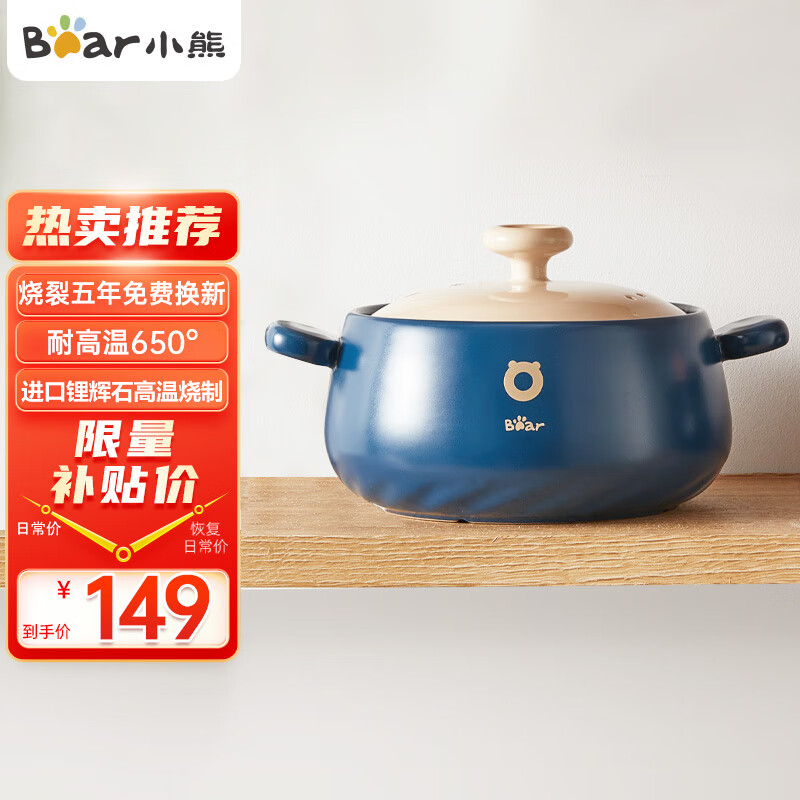 小熊伊万(BEAREWAN)砂锅 煲汤锅耐高温不开裂 3.5L通用沙锅 宽口炖锅燃气灶陶瓷锅价格:169.00元!