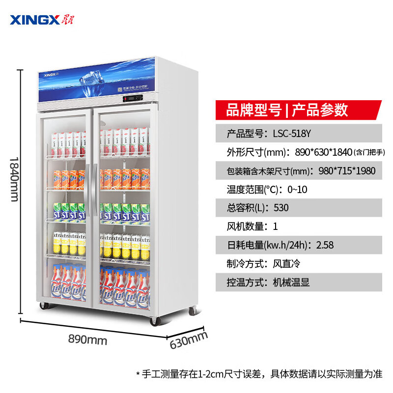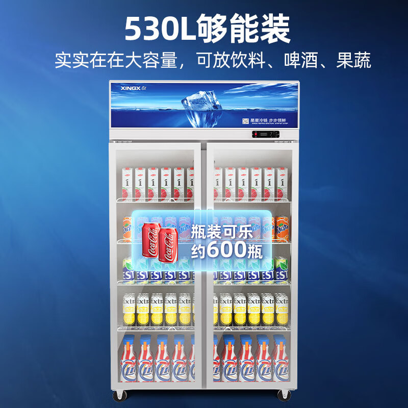 星星(XINGX)展示柜冷藏保鲜柜双开门立式冰柜饮料柜 商用冰箱风直冷超市便利店水果啤酒冷柜 2024款530升 风机循环制冷 LSC-518Y价格:2099.00元!