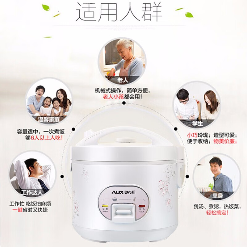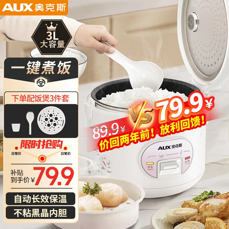 奥克斯(AUX)电饭煲 电饭锅 3L家用简易操作老式西施煲 小型电饭锅 3-4人 VK-301X8价格:89.90元!