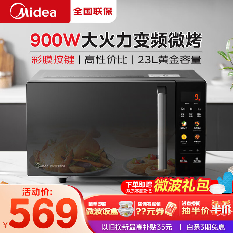 美的(Midea)升级款微碳系列微波炉烤箱一体机900w微波1000w烧烤平板光波速热23L容量变频臻彩荧幕 (C32)价格:569.00元!