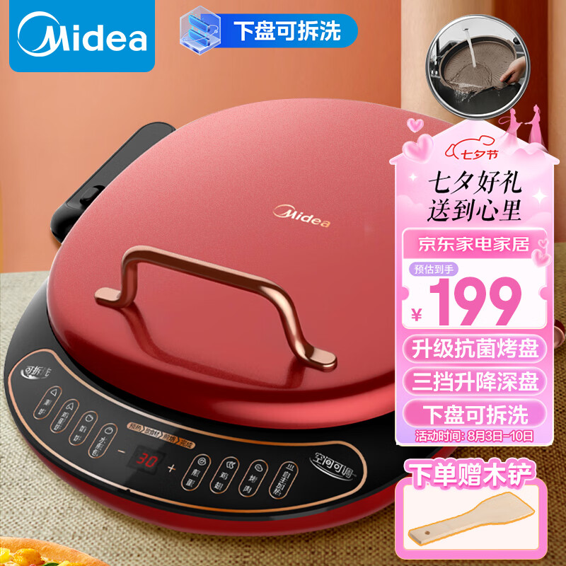 美的(Midea)电饼铛家用加深大尺寸双面加热加深 下盘可拆洗智能烙饼煎饼锅煎饼机三明治早餐机电饼档JK30P301价格:199.00元!