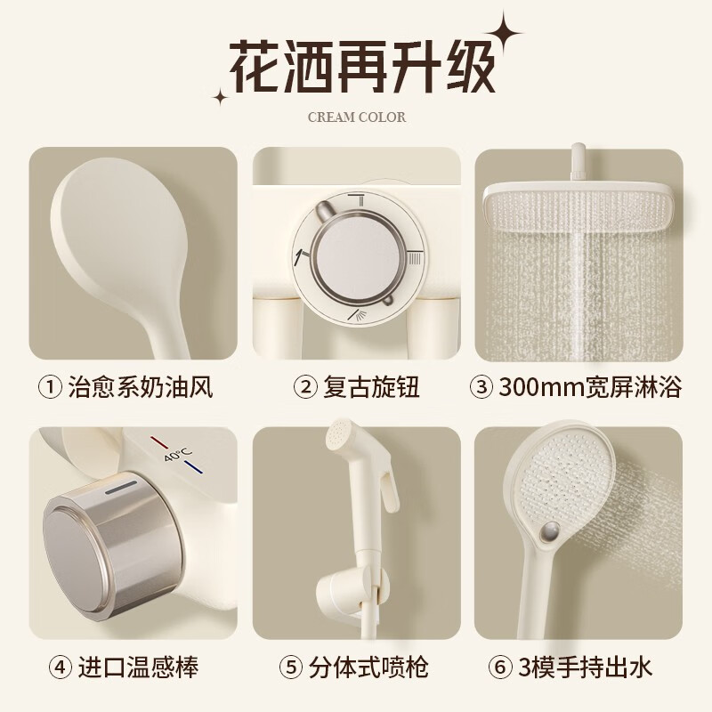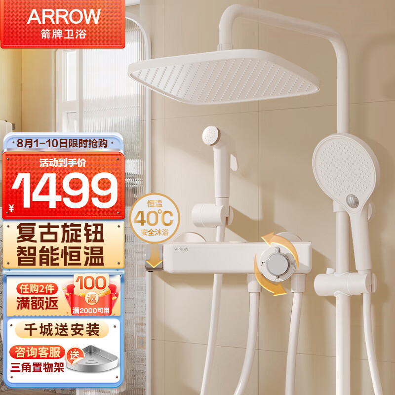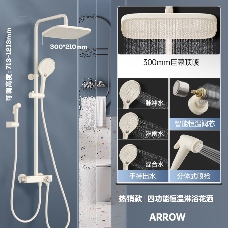箭牌(ARROW) 淋浴花洒套装增压花洒奶油风花洒莲蓬头淋雨器套装浴室花洒 四功能防烫 智能恒温【奶油白】价格:1799.00元!
