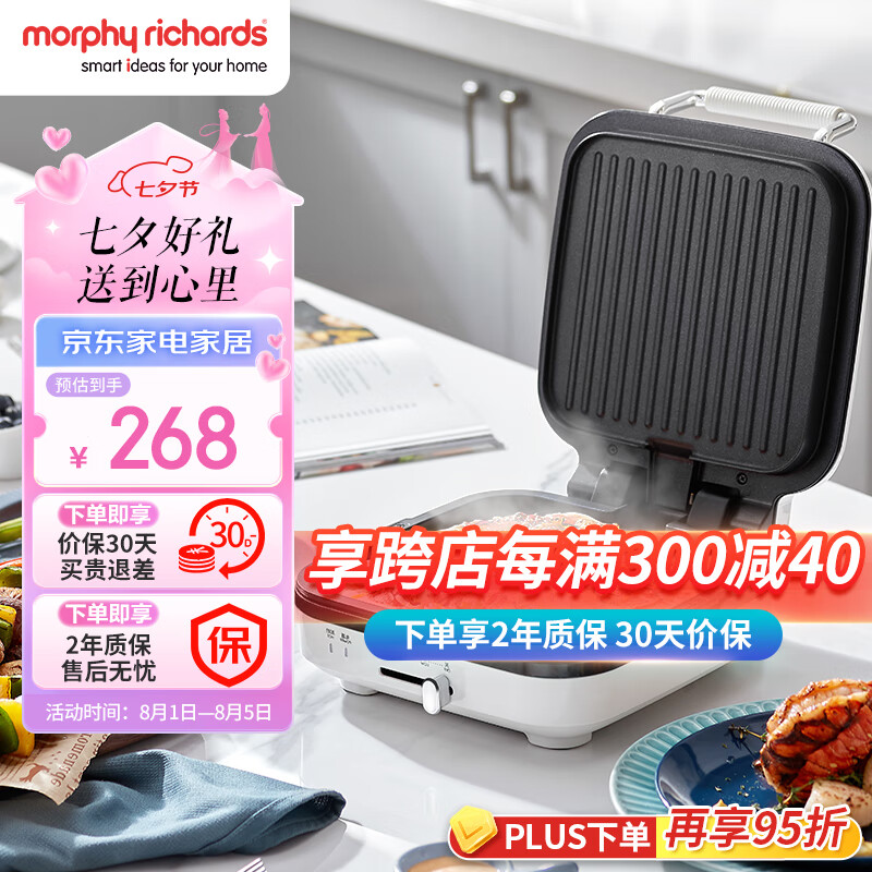 摩飞电器(Morphyrichards)电饼铛 家用双面加热大火力三明治早餐机 下盘可拆卸面包吐司煎烤机烙饼锅 MR8600椰奶白价格:268.00元!