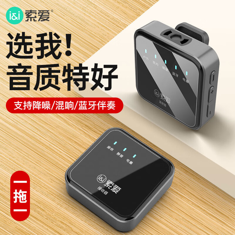 索爱 MK19无线领夹麦克风viog录音声卡收音器小蜜蜂户外直播采访短视频降噪话筒【一拖一】价格:359.00元!