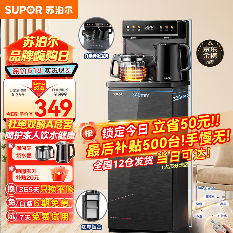 苏泊尔(SUPOR)茶吧机 2024款家用高端饮水机 遥控智能下置水桶全自动控温立式温热多功能泡茶机 CBJ27【温热款】价格:349.00元!