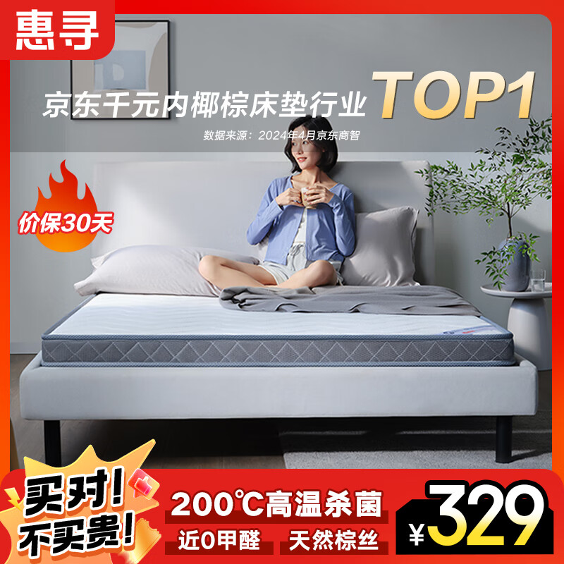 惠寻 京东自有品牌 椰棕床垫硬棕垫薄床垫偏硬无胶水 1.2*1.9米10cm厚价格:359.00元!