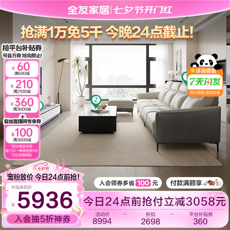 全友家居 简约客厅3件套装102710皮沙发岩板茶几电视柜主柜客厅家具价格:8994.29元!