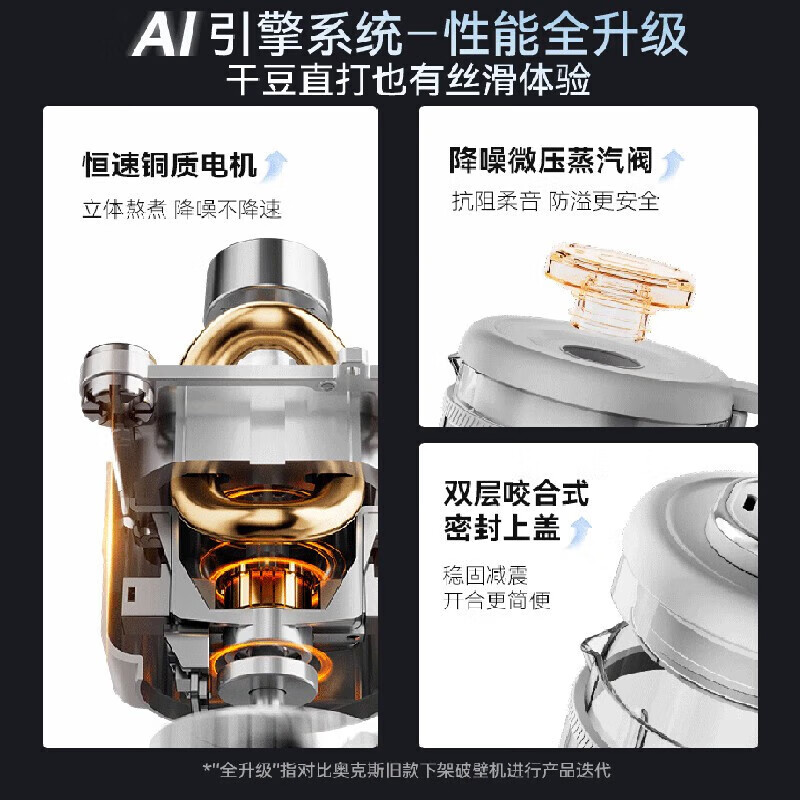 奥克斯柔音破壁机智能AI语音操作多功能家用豆浆机1.5L大容量料理机全自动可拆洗预约APB-08A2B09价格:309.00元!