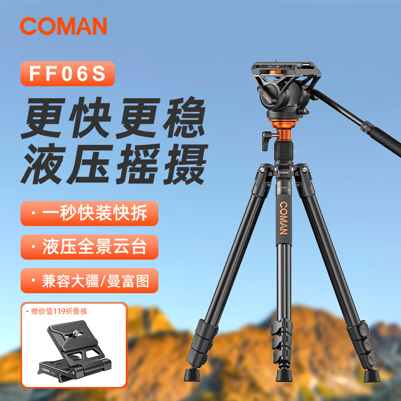 科漫FF06S相机三脚架专业摄影摄像便携手机稳定支架自拍直播拍照录像户外独脚液压云台单反三角架价格:558.00元!