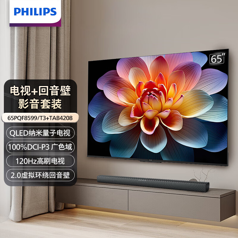 飞利浦(PHILIPS)65PQF8599/T3+TAB4208 电视回音壁组套 娱乐观影套装65英寸屏杜比全景声价格:3498.00元!