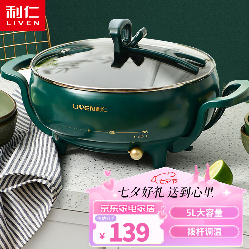 利仁(Liven)电煮锅电火锅家用火锅锅多功能锅多用途锅电热锅烤肉锅宿舍小电锅电煎锅5升 DHG-J282价格:139.00元!