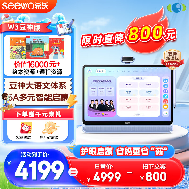 希沃学习机W3豆神限量款大语文类纸护眼大屏学生平板电脑小学到高中同步英语学习早教机8G+128G星辰紫价格:4199.00元!