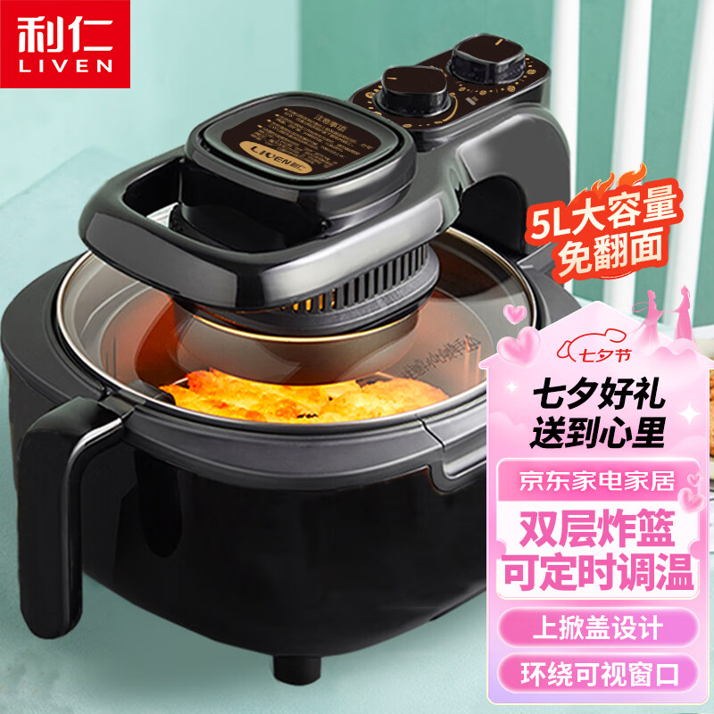 利仁(Liven)空气炸锅可视家用5升大容量无油电炸锅蒸汽炸锅 多功能空气炸锅炸烤一体烤箱薯条机KZ-J5000B价格:219.00元!