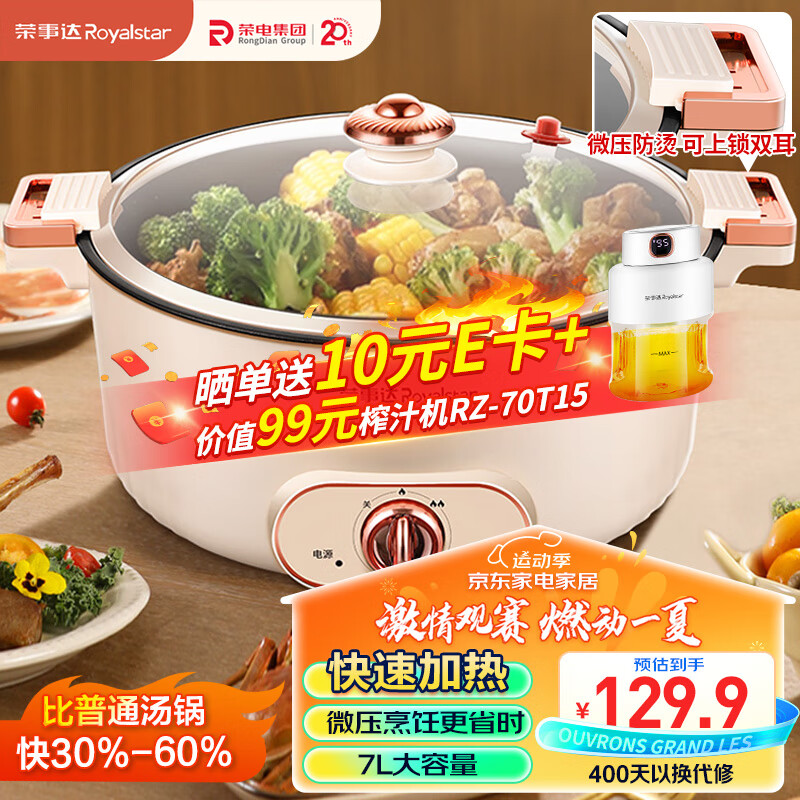 荣事达(Royalstar)电火锅7L微压火锅专用锅 电炒锅 家用电热锅 一体锅 大容量电煮炖锅电锅RHG-70XV价格:129.90元!
