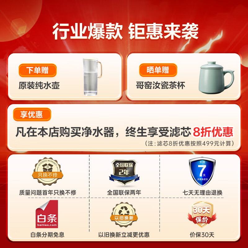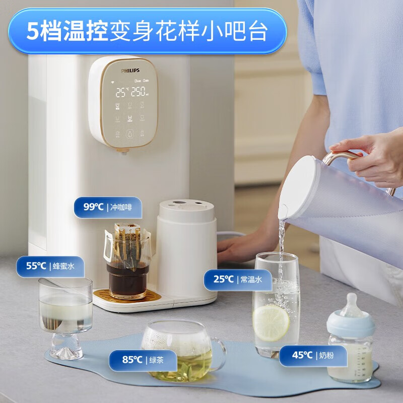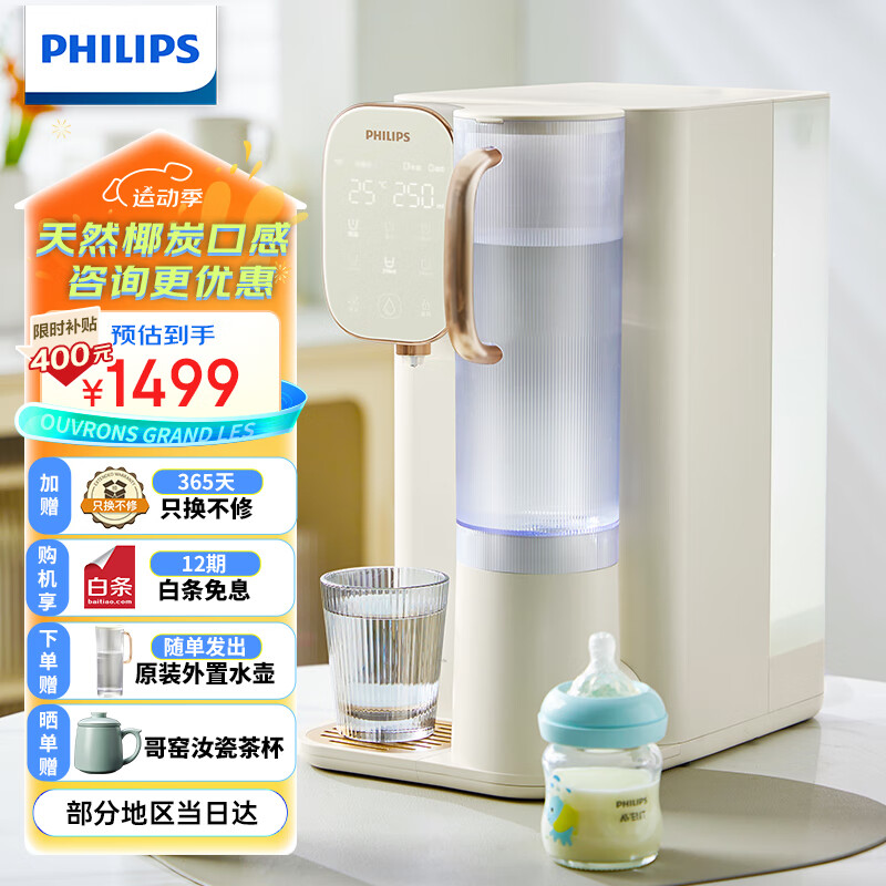 飞利浦净水器家用 净水器加热直饮一体机 全屋适用台式免安装即热直饮水机RO反渗透净水器自来水过滤器 【天然椰碳口感】ADD6850价格:1899.00元!