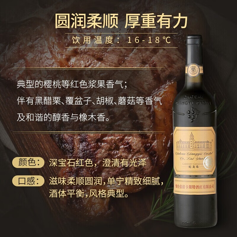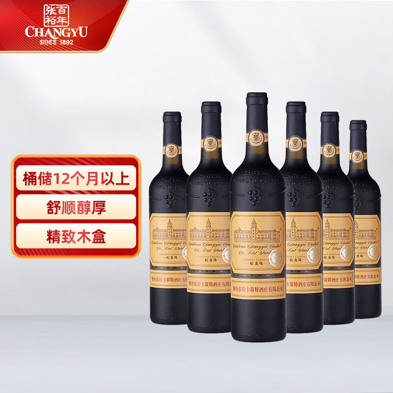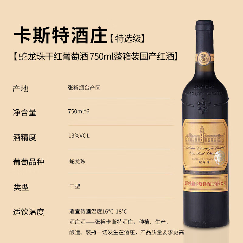 张裕 卡斯特酒庄特选级蛇龙珠干红葡萄酒750ml*6瓶整箱装红酒酒庄酒价格:2208.00元!