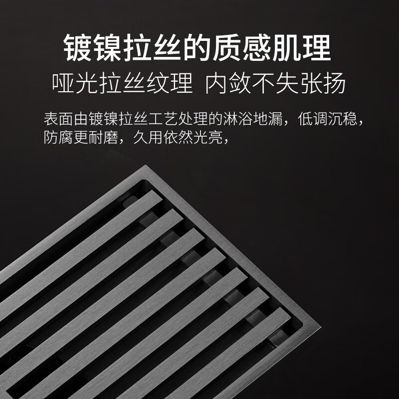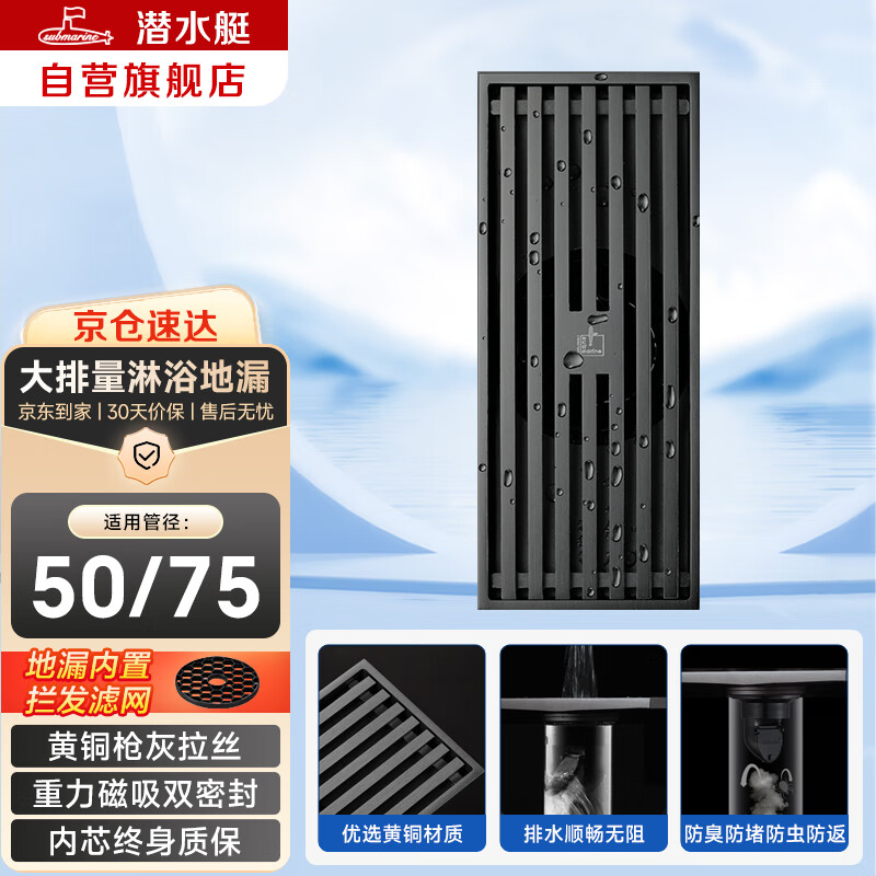 潜水艇(Submarine)MTKC50-20黄铜镀镍枪灰色拉丝防臭地漏20cm长条干湿区可用50管径价格:258.00元!