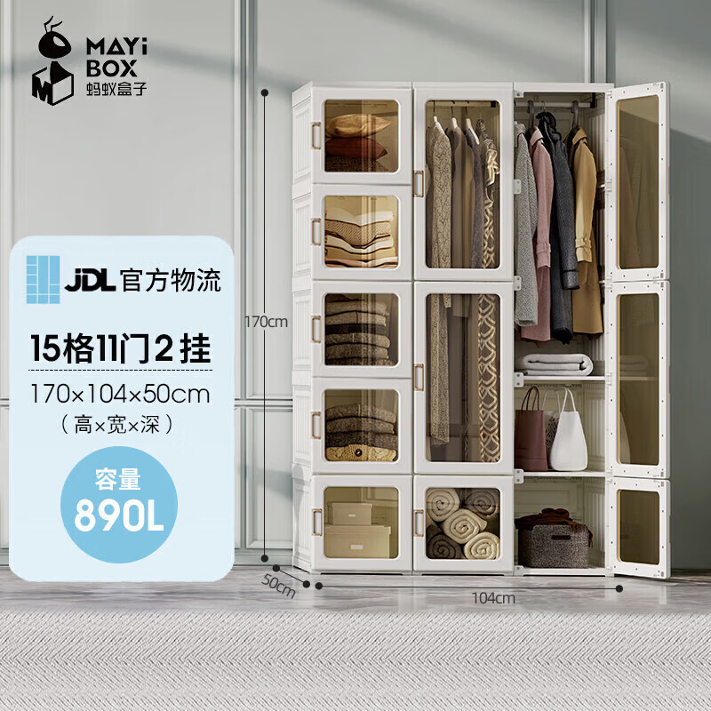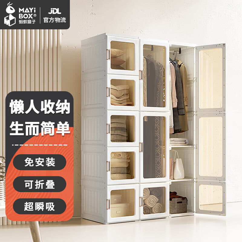蚂蚁盒子(MAYIHEZI)免安装可折叠塑料成人简易衣柜出租房衣服收纳防尘15门11门2挂价格:709.00元!