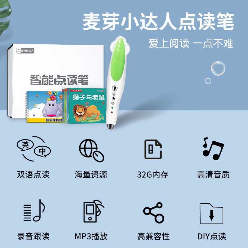麦芽小达人(MaiYa)点读笔32G绿幼儿早教机生日礼物可点读DK博物大百科RAZ等书籍单笔价格:348.00元!