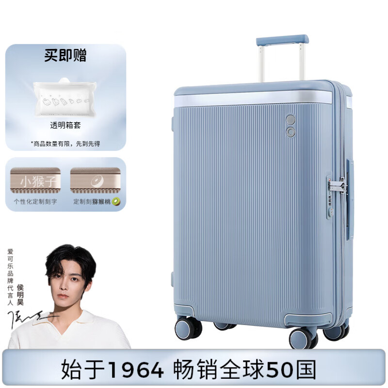 爱可乐(Echolac)明星同款大容量行李箱出国旅行箱王朝防刮拉杆箱湖水蓝20吋PC142价格:1179.00元!