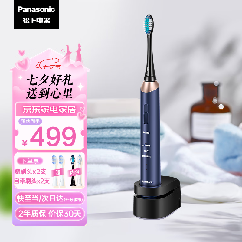 松下(Panasonic)电动牙刷适合敏感牙龈 去渍护龈 智能感应 3种洁齿模式七夕情人节情侣礼物送对象DC12蓝色价格:539.00元!