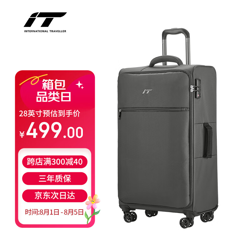 INTERNATIonAL TRAVELLER英国IT拉杆箱托运旅行箱万向轮超轻行李箱28英寸软布箱1191灰色价格:599.00元!
