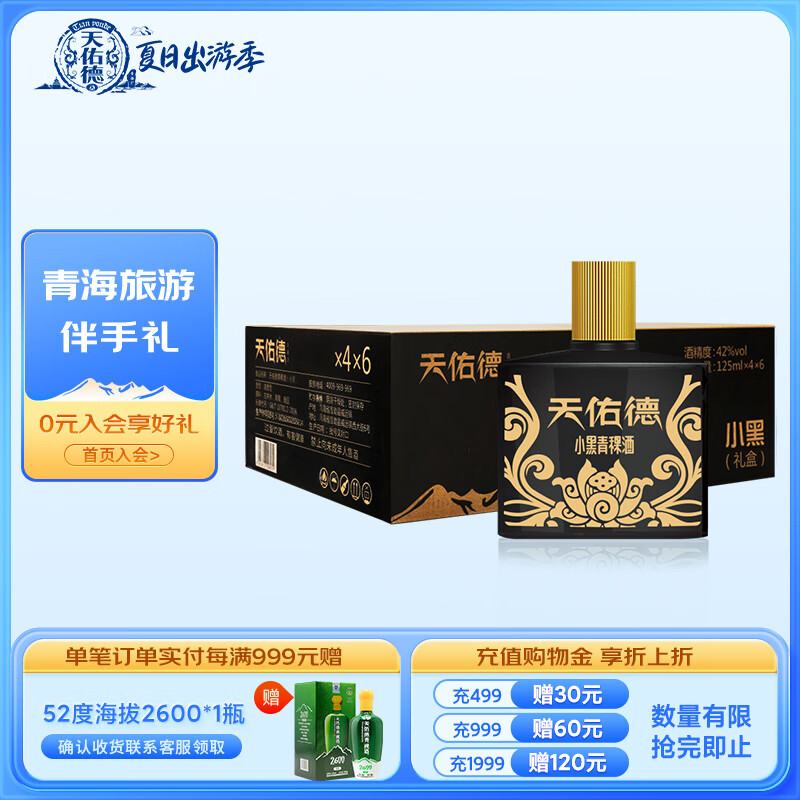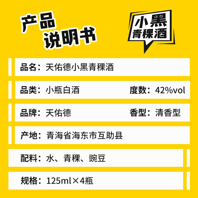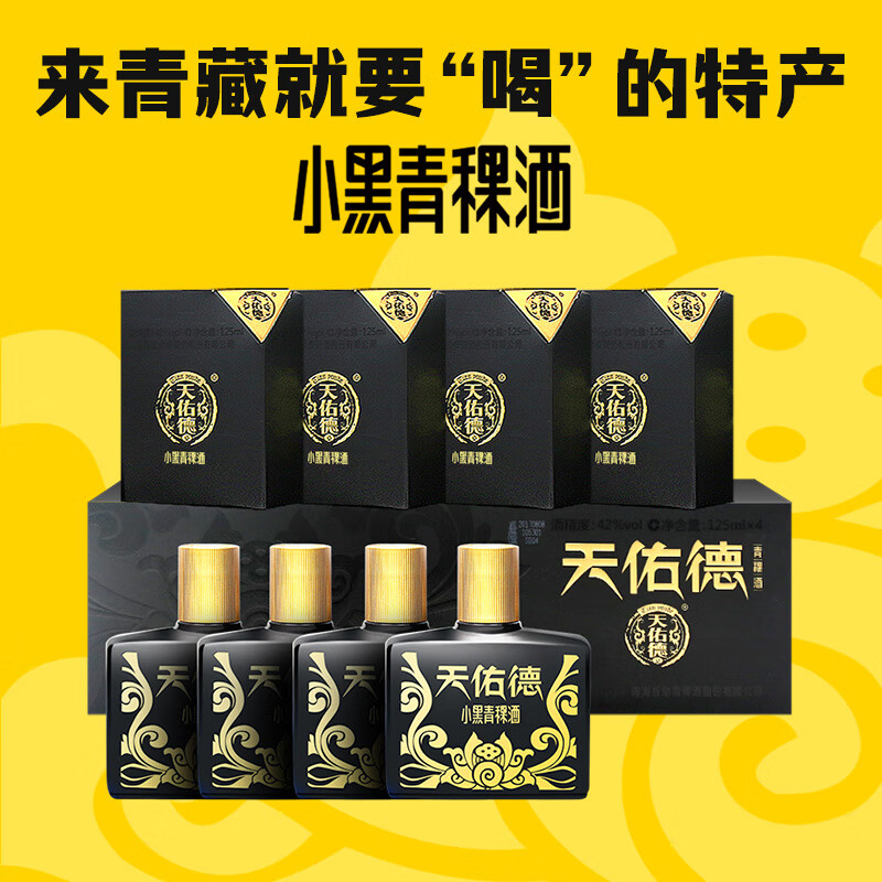 天佑德 小黑系列清香型白酒42度 125ml*4瓶*6盒【青海青稞酒】价格:628.00元!