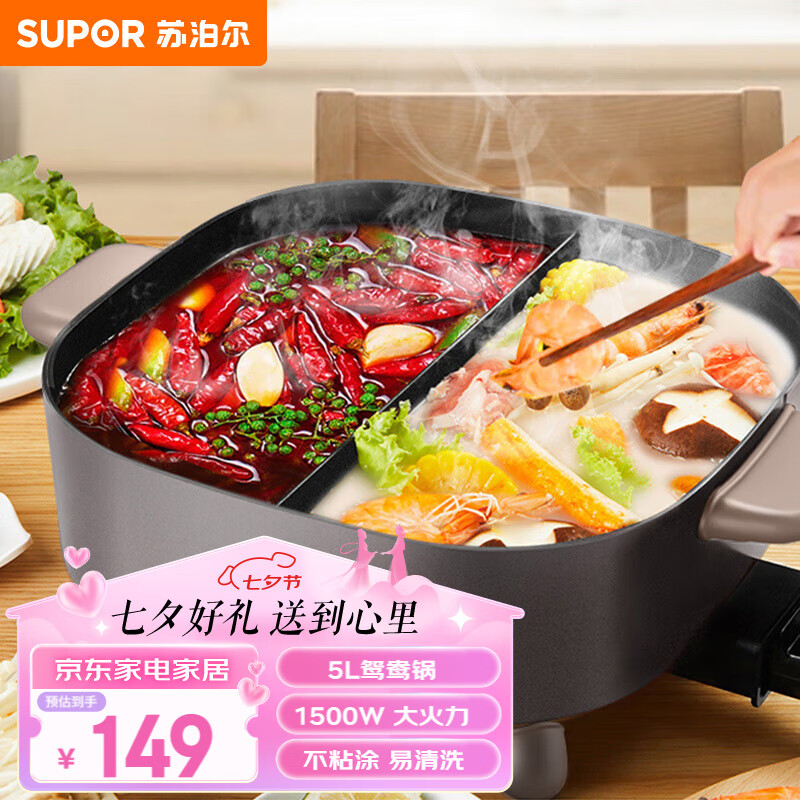 苏泊尔 SUPOR 电火锅 鸳鸯锅火锅专用锅涮肉锅电煮锅火锅锅 家用多功能锅 电热锅 多用途锅 H2828FK614Y价格:149.00元!