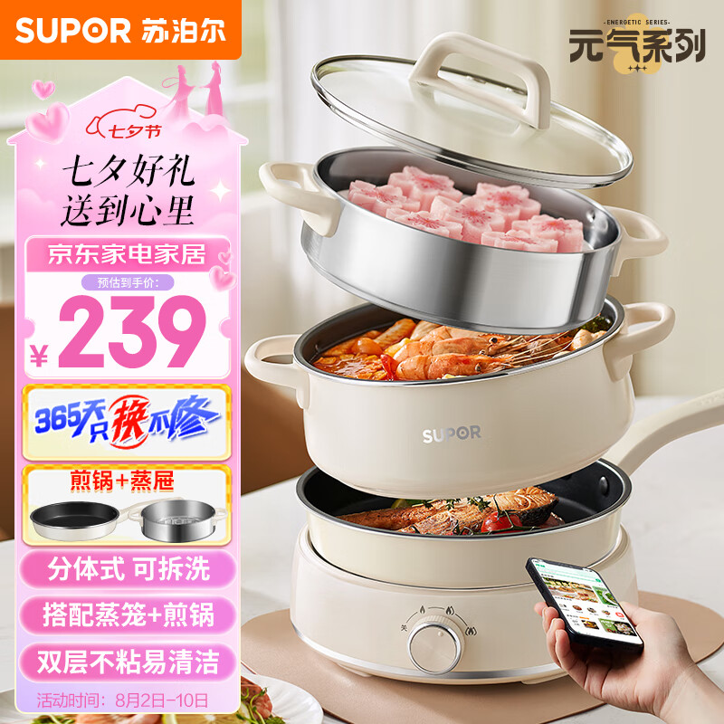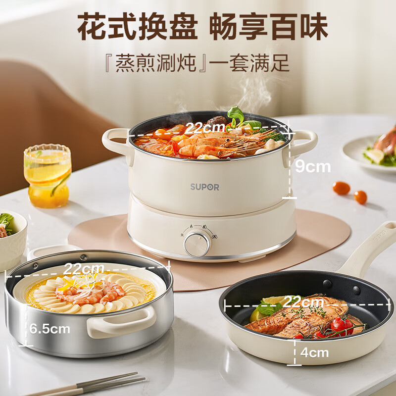 苏泊尔(SUPOR)电火锅 火锅锅 分体可拆洗家用火锅专用锅电蒸锅煎炒锅多功能一体电煮锅多用途锅 H22YK855A价格:239.00元!