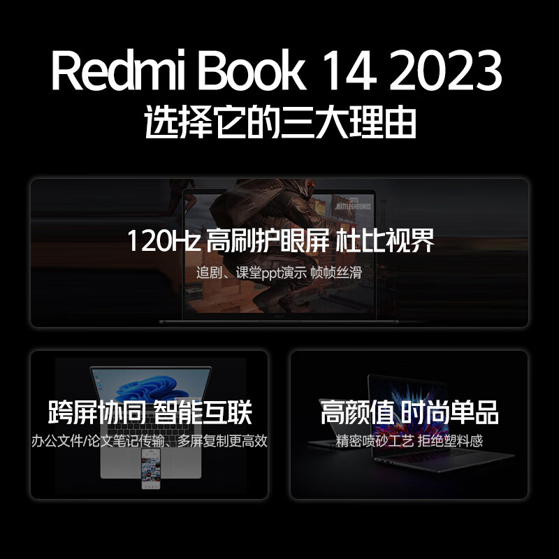 2、同事推荐了这款红米Redmibook14,首先拿到手外观就非常高级,灰色磨砂调加上轻薄机身,做工精致拉满,系统windows11,屏幕2.8k120赫兹,处理器搭载英特尔12代酷睿,性能堪称强悍,日常办公,休闲娱乐,刷视频看剧超级爽,既轻薄又便携性价比拉满啦!