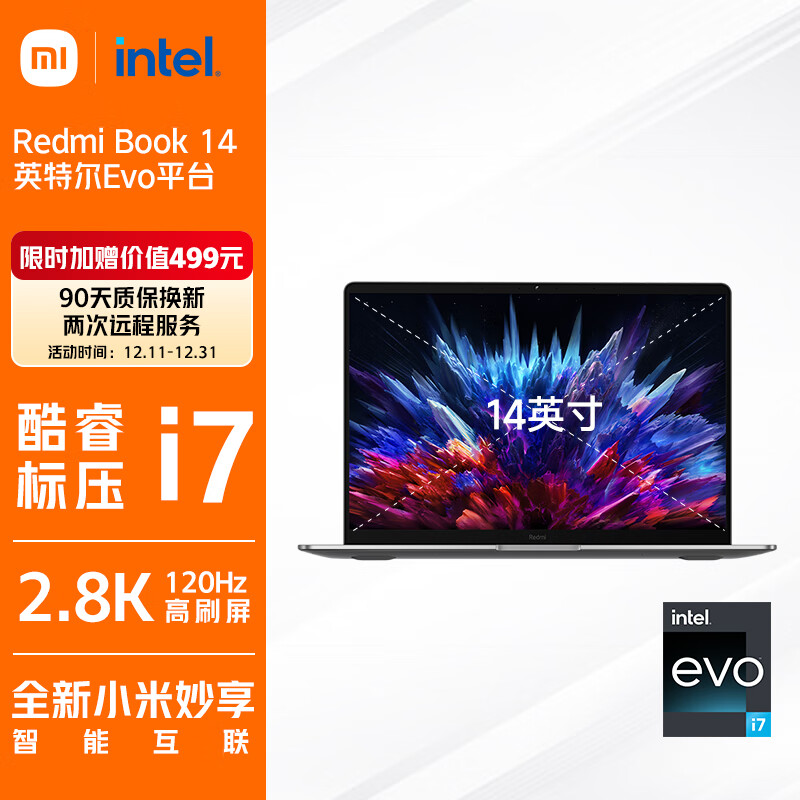 小米笔记本电脑 Redmi Book 14 12代酷睿i7 Evo认证 2.8K-120hz高刷屏 学生高性能轻薄本i7-12700H 16G 512G银色价格:4799.00元!