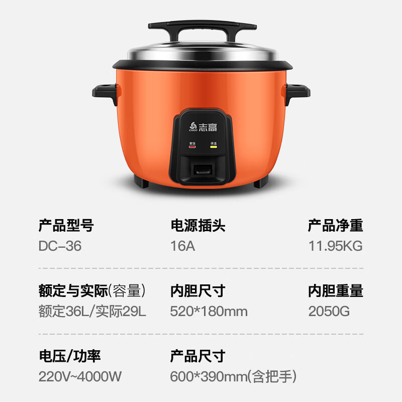 志高(CHIGO)电饭煲商用电饭锅食堂酒店餐厅特大号老式大容量保温蒸饭煲煮饭锅10人20人以上家用 DC-36价格:589.00元!