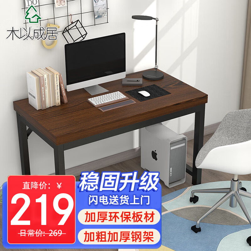 木以成居电脑桌台式加厚桌面办公家用书桌学习桌写字桌子深胡桃色100*60价格:269.00元!